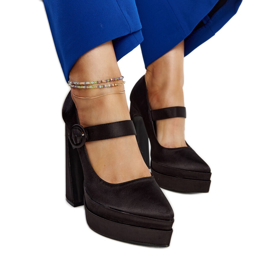 Szczegóły: Czarne czółenka na wysokim słupku Mikea