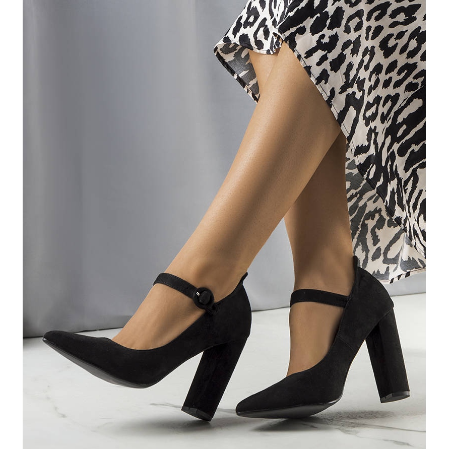 Szczegóły: BM Czarne czółenka z paskiem Kaiser