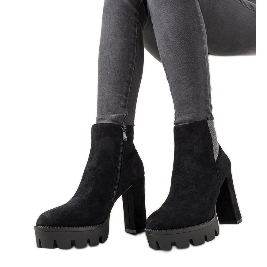 Szczegóły: Czarne damskie botki na grubej podeszwie Idalina