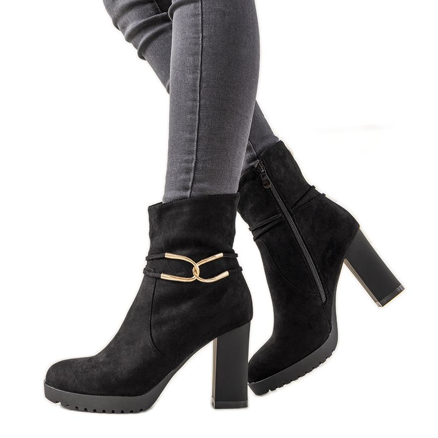 Szczegóły: Czarne damskie botki na wysokim słupku Chateaub