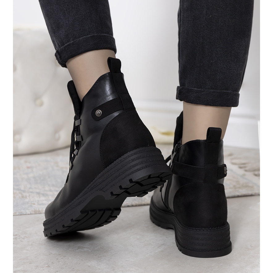 Czarne damskie botki ocieplane Ringer to perfekcyjny wybór dla każdej kobiety, która pragnie połączyć modny design z wygodą. Te stylowe buciki wyróżniają się dbałością o detale, oferując cholewkę wykonaną z wysokiej jakości skóry ekologicznej oraz eleganckimi wstawkami eko-skóry. Dzięki wysokiej podeszwy, botki Ringer są absolutnym must-have tego sezonu, idealnie wpisując się w obecne trendy.