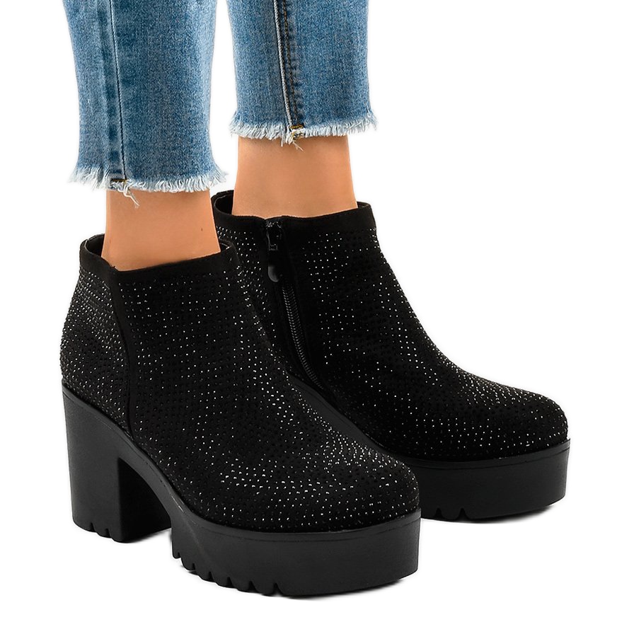 Inna marka Czarne damskie botki traperki ćwieki CN880