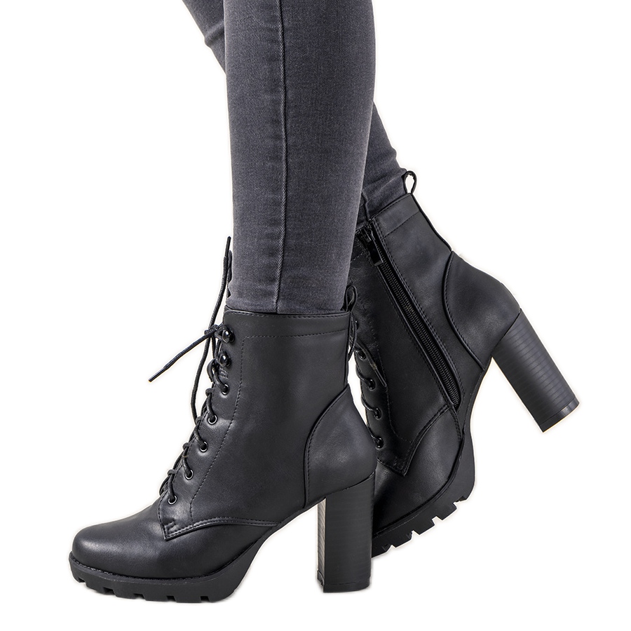 Inna marka Czarne damskie botki z wiązaniem na słupku Najera