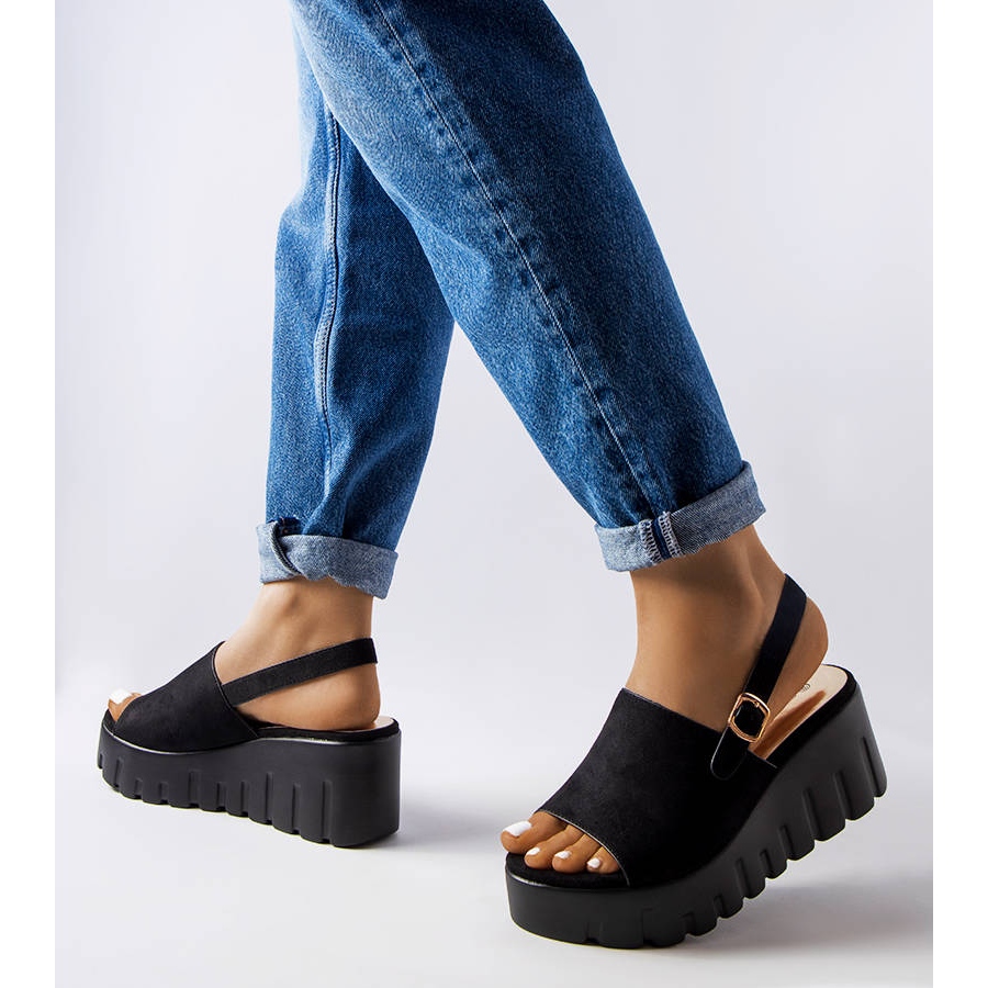 Szczegóły: Czarne damskie sandały na koturnie Berfin