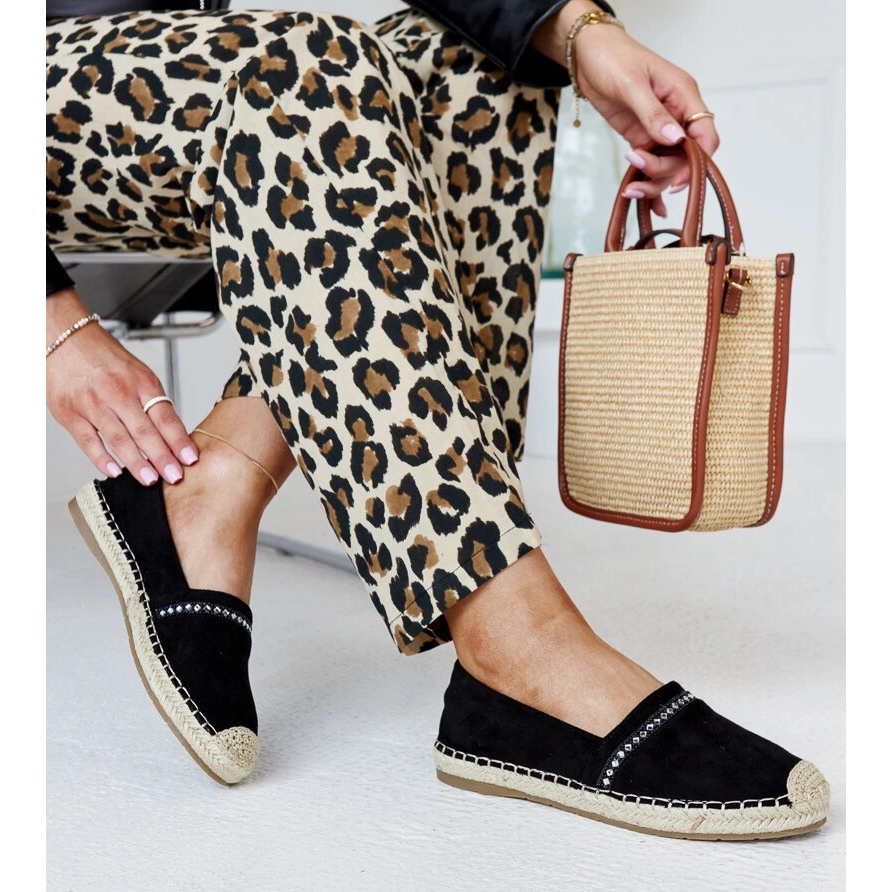 Szczegóły: Czarne espadryle z cyrkoniami Abia