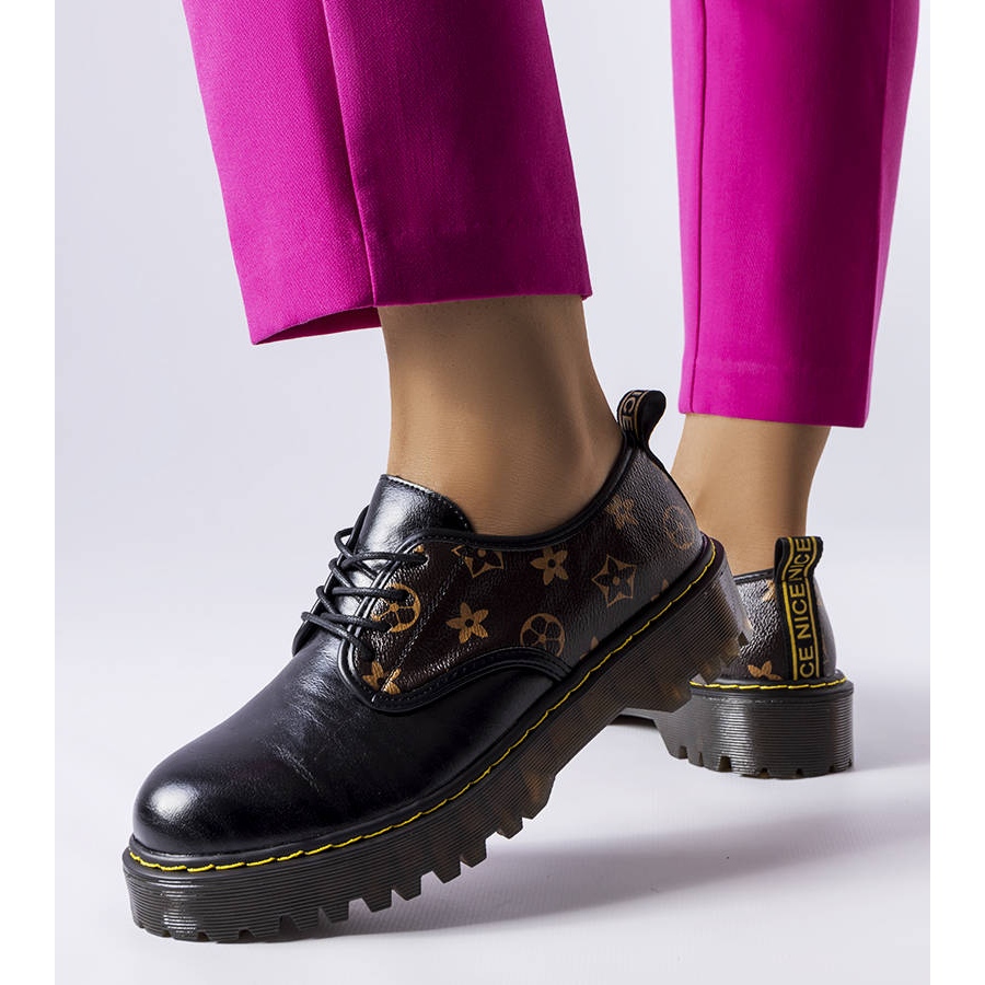 Inna marka Czarne glany z brązowymi wstawkami Eugenia