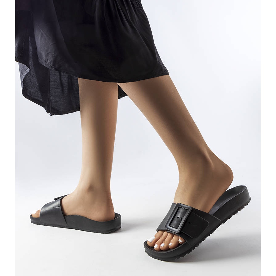 Inna marka Czarne gumowe klapki z klamerką Nelm