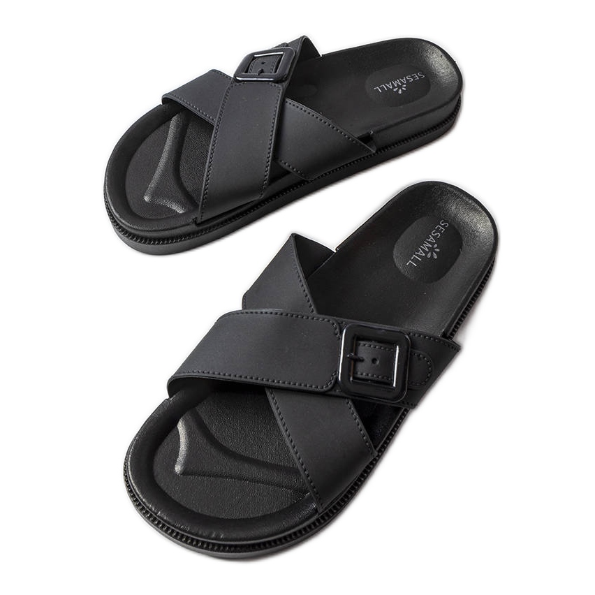 Inna marka Czarne gumowe klapki z klamerką Pauline
