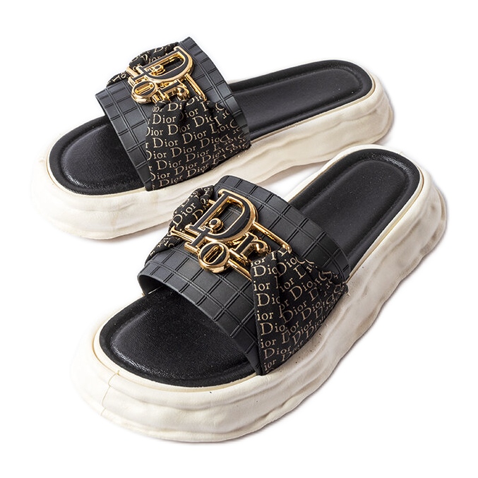 - Model: Czarne gumowe ozdobne klapki