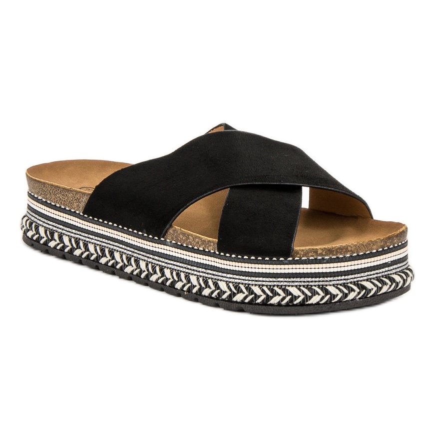 Szczegóły: SHELOVET Czarne Klapki Boho