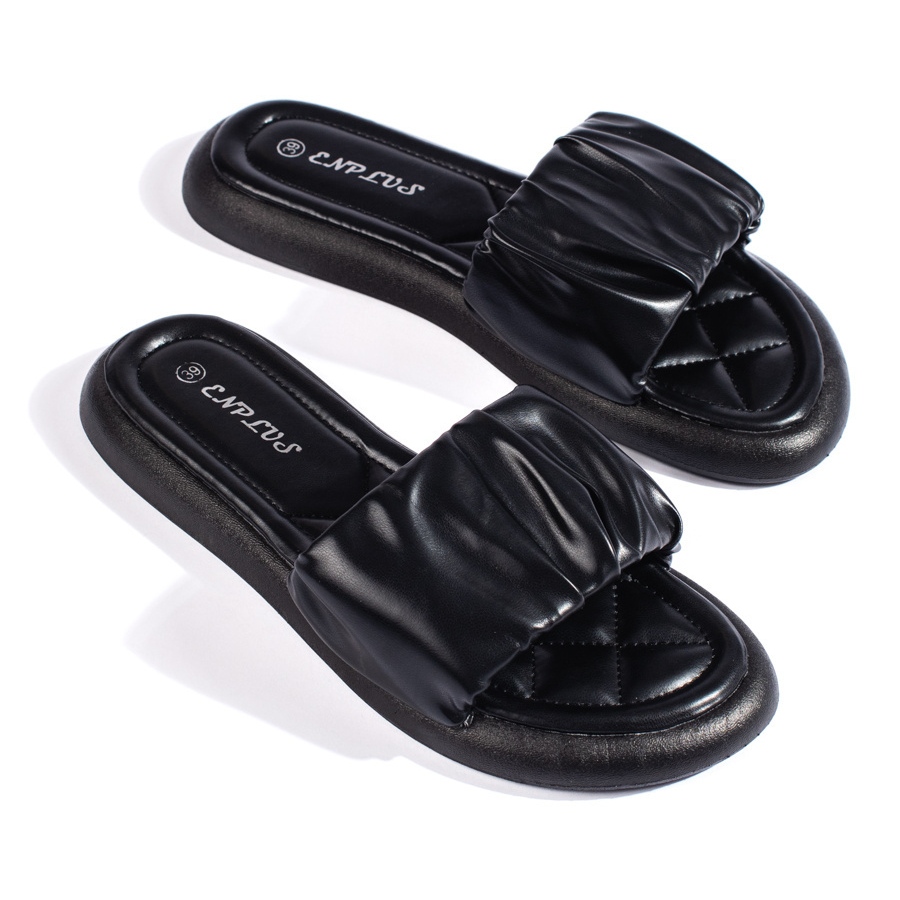 Klasyczny czarny kolor sprawia, że klapki doskonale wpasowują się w różne stylizacje – od casualowych po bardziej eleganckie. Ich minimalistyczny wygląd bez zbędnych wzorów składa się na uniwersalny charakter, dzięki czemu z łatwością dopasujesz je do wszelkich codziennych outfitów.