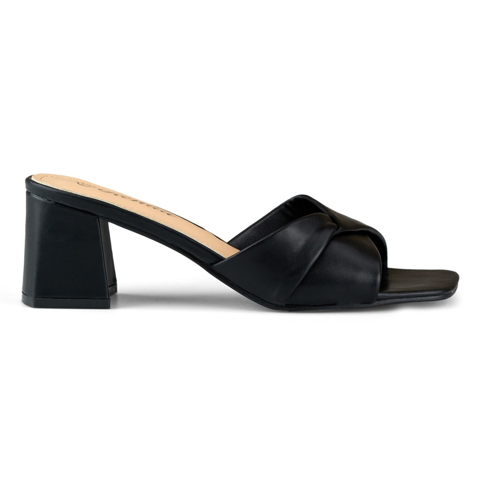 Szczegóły: Czarne klapki damskie na niskim słupku