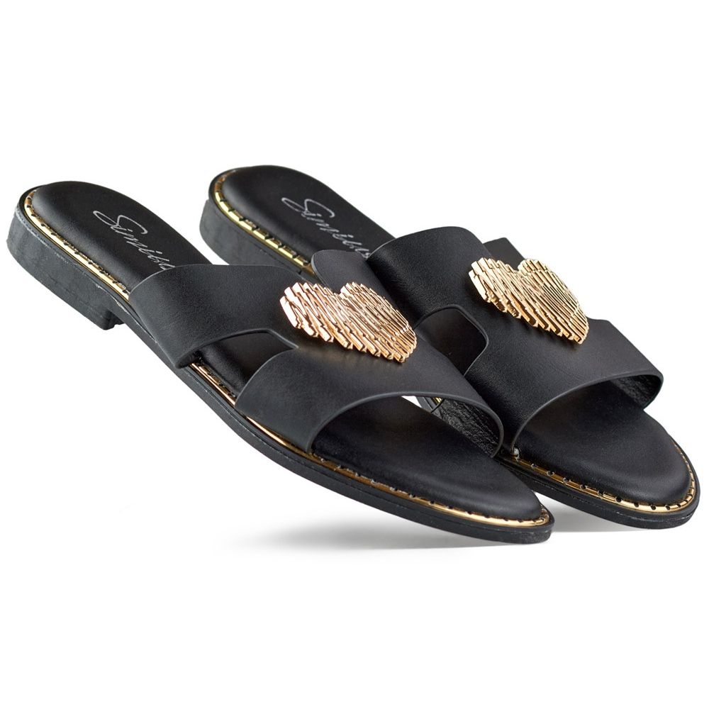 Szczegóły: Czarne klapki damskie z ozdobnym serduszkiem