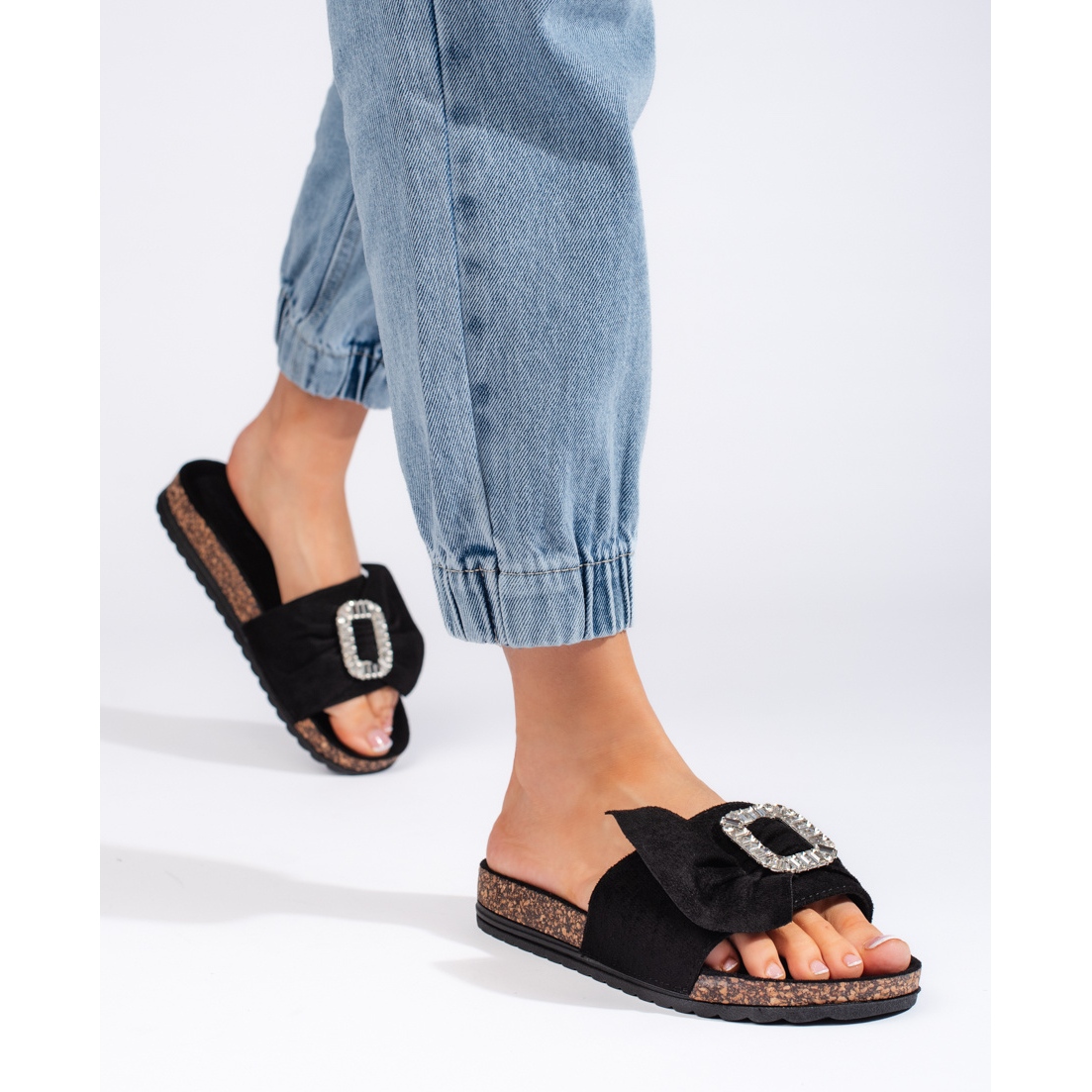 Szczegóły: Czarne klapki na korkowej podeszwie