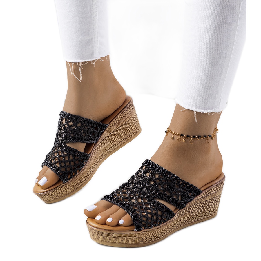 Czarne klapki na koturnie Clara to must-have w Twojej szafie, które z pewnością będą się komponować z wieloma casualowymi stylizacjami. Bez względu na okazję, te klapki stanowią doskonałe uzupełnienie zarówno na co dzień, jak i na bardziej eleganckie wyjścia. Zamów je już dziś i poczuj różnicę!