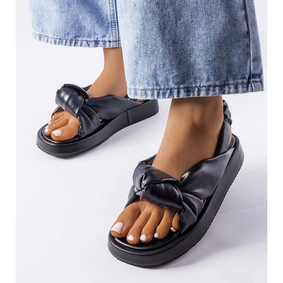 Czarne klapki na koturnie Clarice — eleganckie i wygodne na co dzień