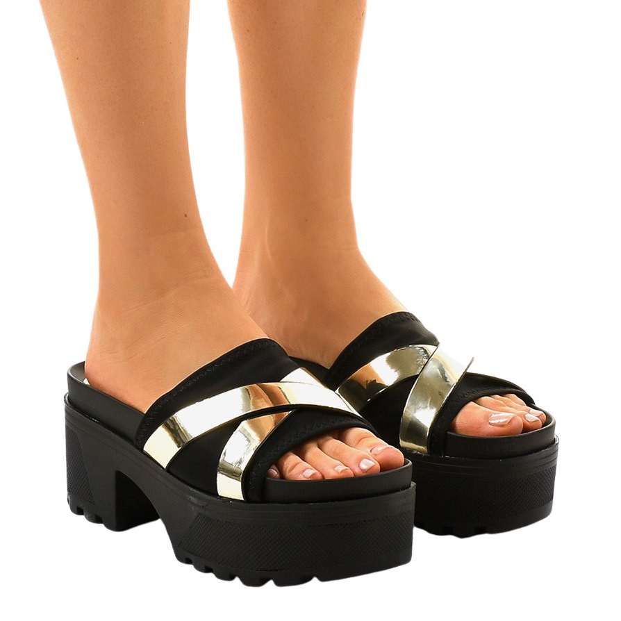 Szczegóły: Czarne klapki na obcasie CL-3A309-42 żółte