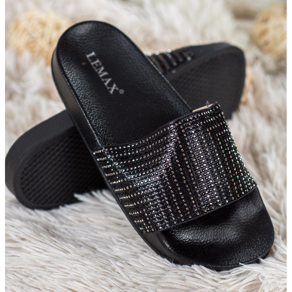 Lemax Lemax Czarne Klapki Z Cyrkoniami