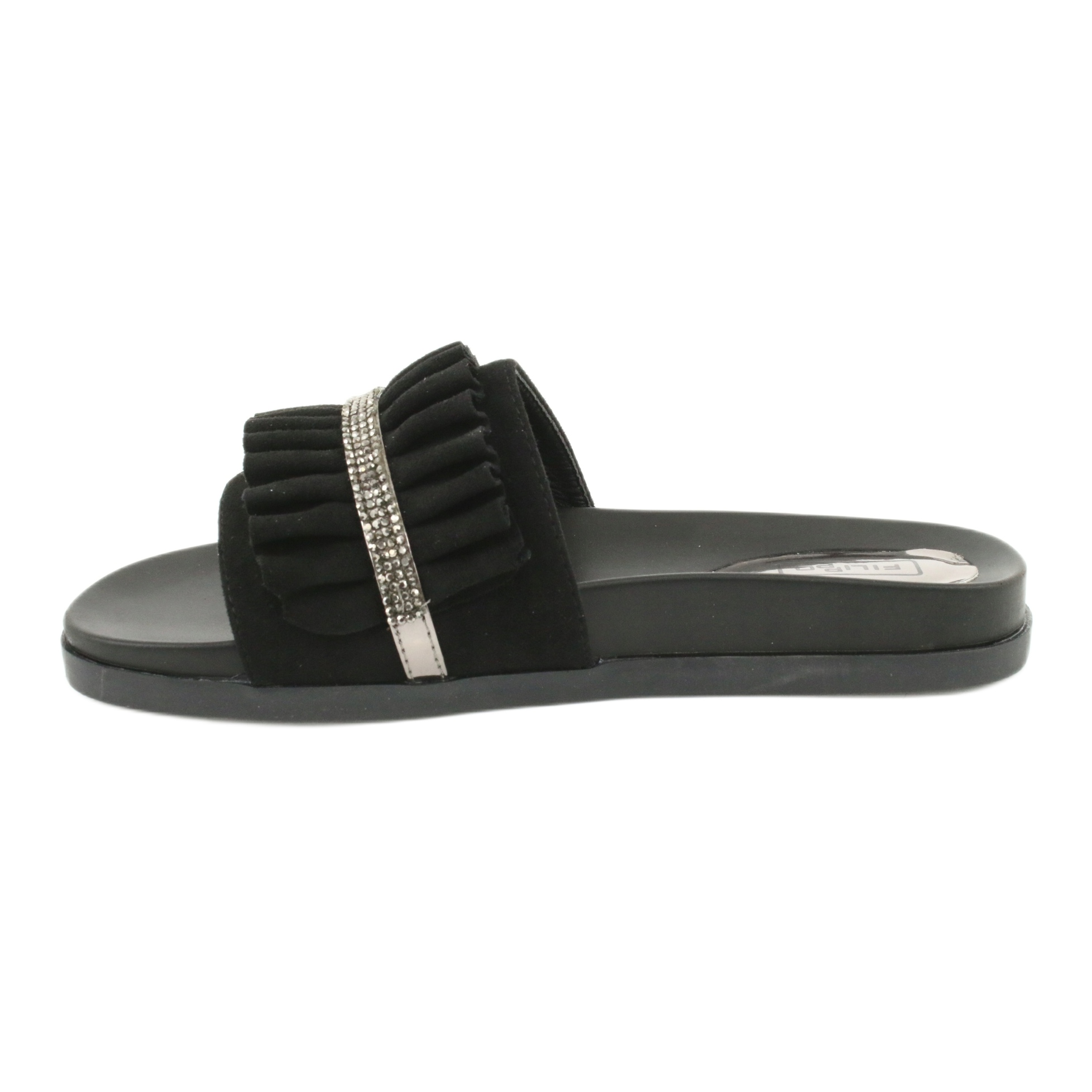 Filippo DK1241/20 BK — czarne klapki damskie z falbanką i cyrkoniami