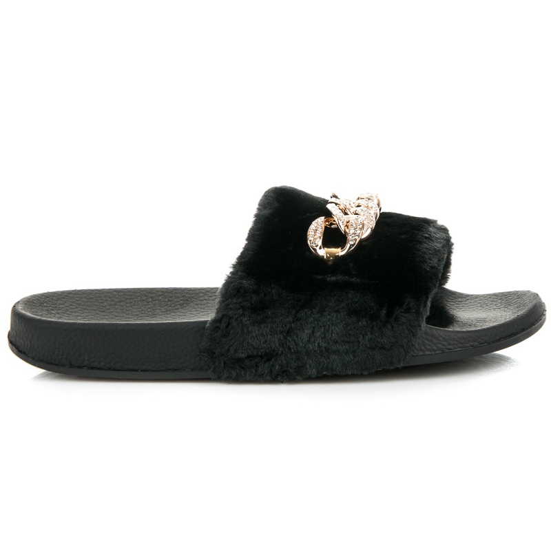 Szczegóły: Queen Vivi Czarne Klapki Z Futerkiem