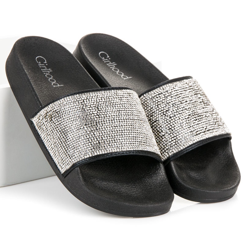 Girlhood Girlhood Czarne klapki z kryształkami