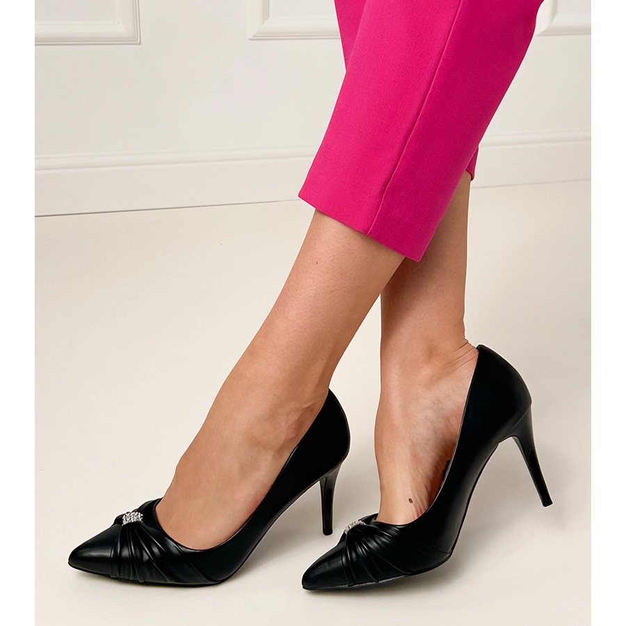 Szczegóły: Czarne klasyczne czółenka na szpilce z cyrkoniami