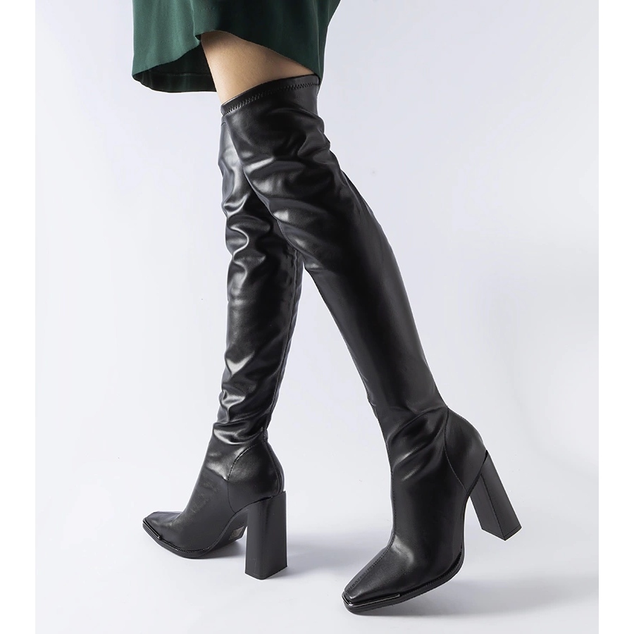 Czarne klasyczne kozaki za kolano — model 6028 Długie kozaki wsuwane