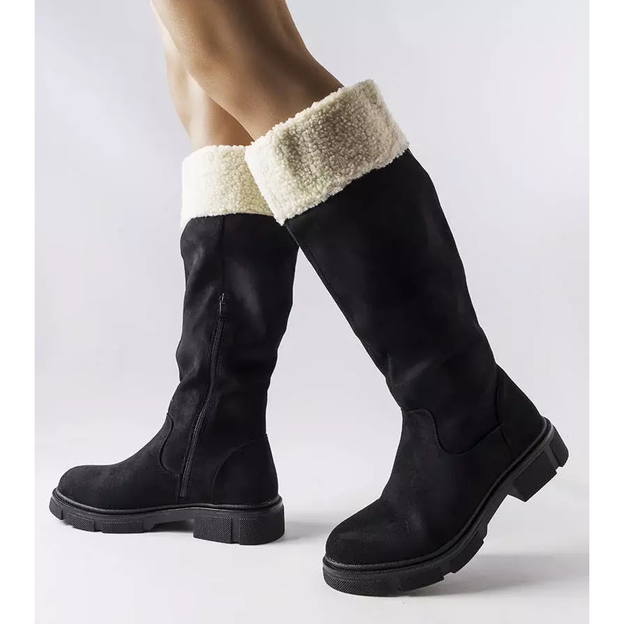 Szczegóły: Czarne kozaki eko-zamsz Erin
