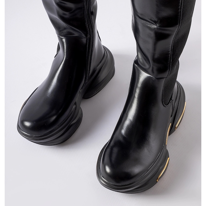 Inna Czarne kozaki na masywnej podeszwie Tanas — model 0315-1