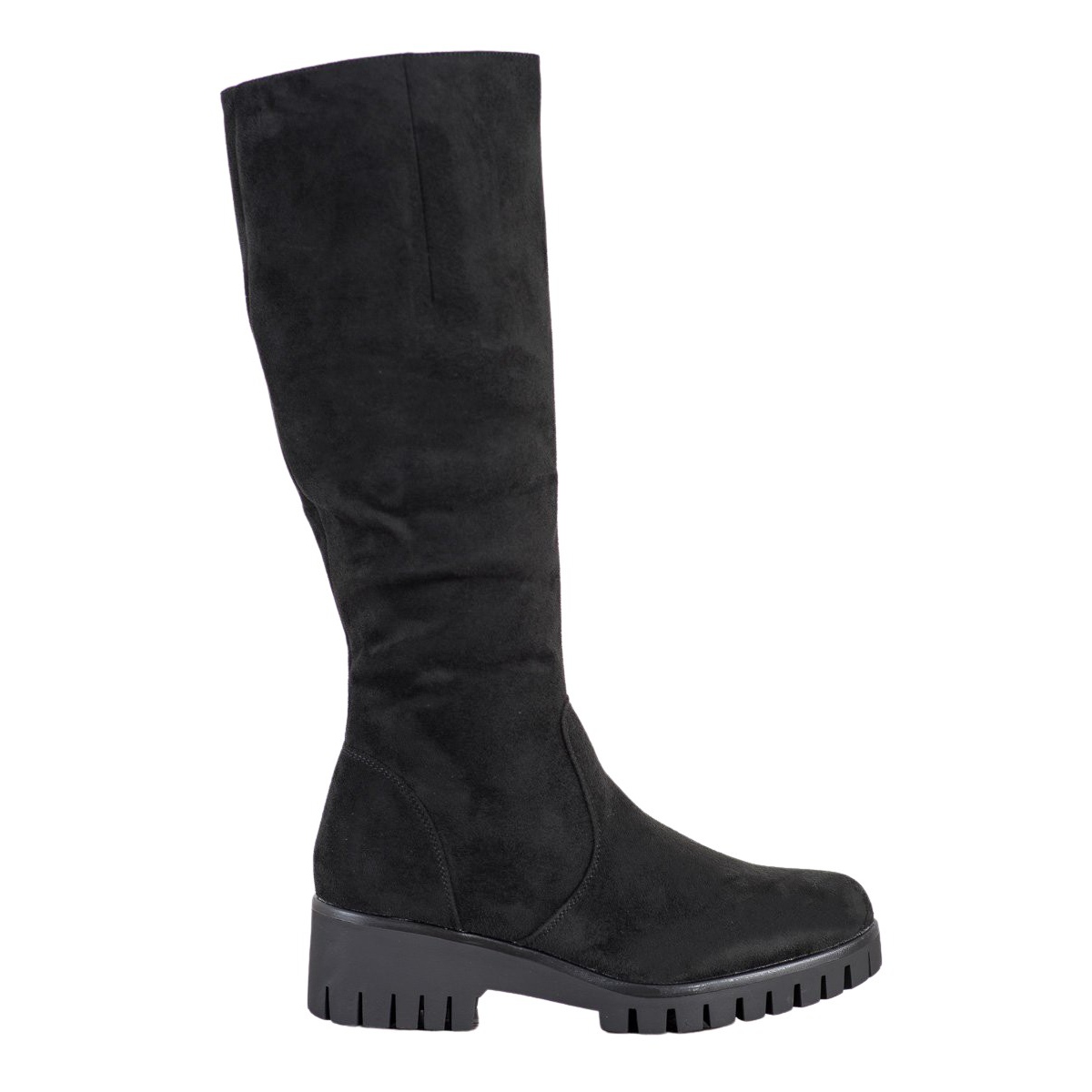 Wysoka cholewka sięgająca do kolana oraz okrągły nosek podkreślają ich klasyczny fason. Podeszwa z tworzywa sztucznego z bieżnikiem zapewnia doskonałą przyczepność, a platforma o wysokości 2 cm oraz obcas 5 cm dodatkowo poprawiają komfort użytkowania, dodając jednocześnie stylowego wyglądu.