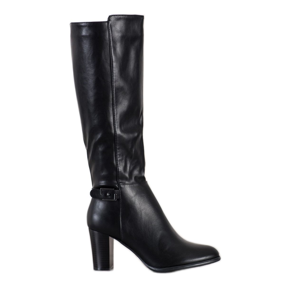 Wysoka cholewka, która sięga do kolana, sprawia, że kozaki są nie tylko modne, ale również praktyczne – skutecznie chronią przed zimnem i wilgocią. Ozdobna sprzączka stanowi interesujący detal, który nadaje obuwiu wyjątkowego charakteru. Okrągły nosek oraz gładka, syntetyczna podeszwa zapewniają wygodę noszenia, a 7-centymetrowy słupek dodaje kobiecego wdzięku.
