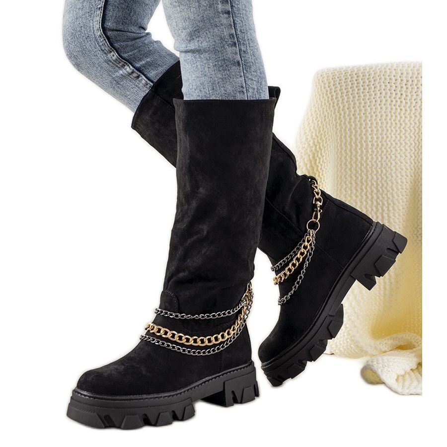 Inna marka Czarne kozaki z łańcuchem Saturday