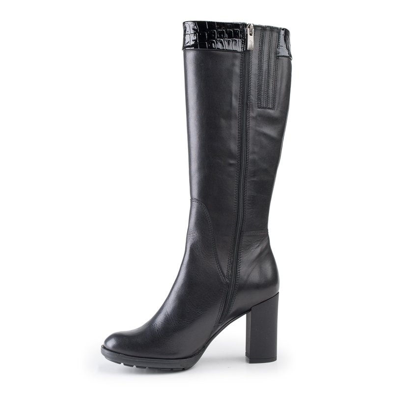 Szczegóły: Marco Shoes Czarne kozaki ze skóry licowej z aplikacją ze skóry wężowej