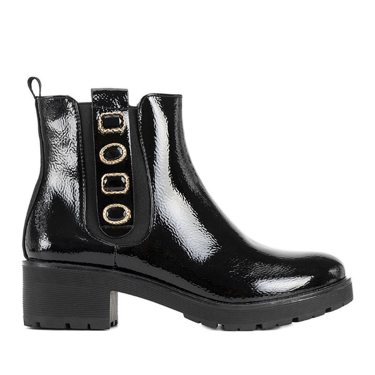 Inna marka Czarne lakierowane botki na płaskim obcasie Ripple