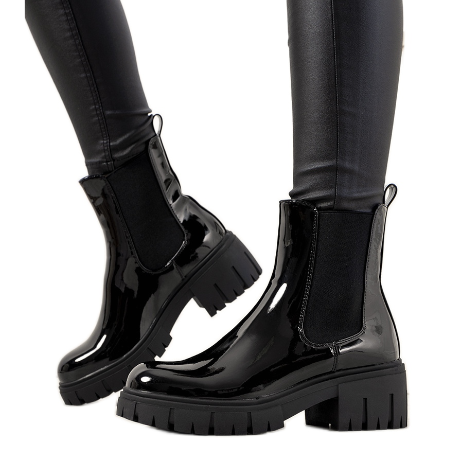 Inna marka Czarne lakierowane botki ocieplane Campi