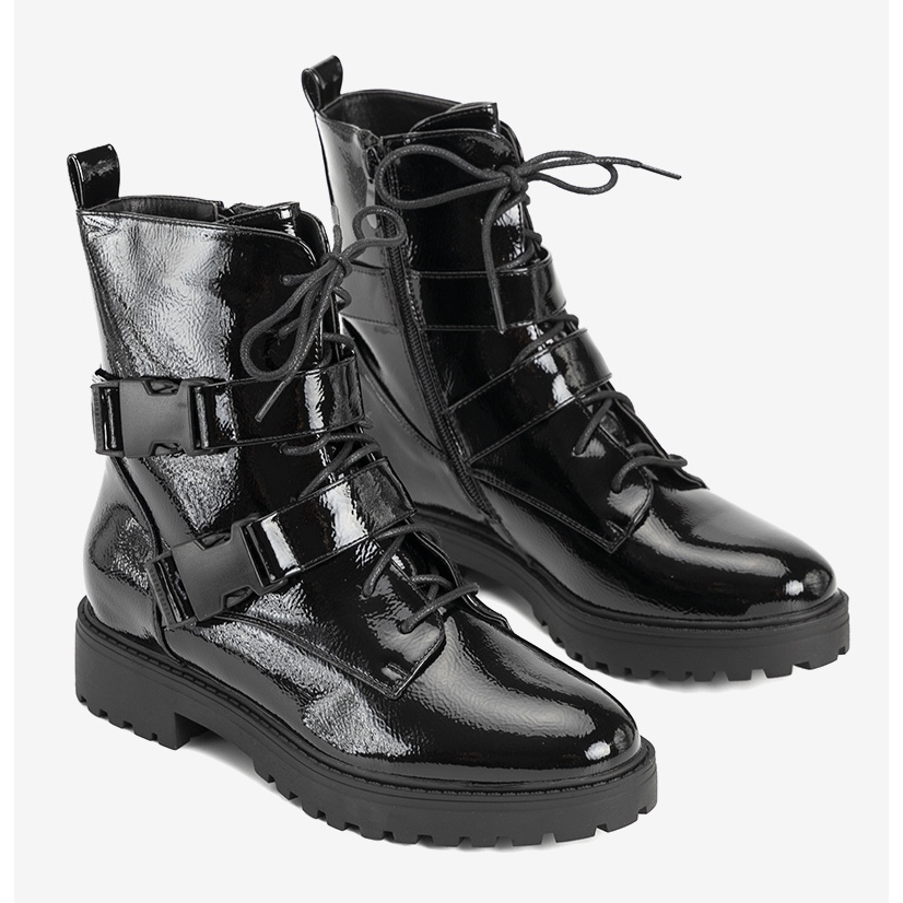 Szczegóły: Czarne lakierowane damskie botki Ferland