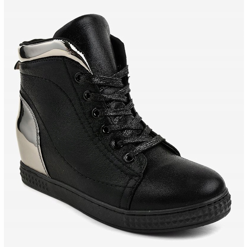 Inna marka Czarne lakierowane sneakersy na koturnie R469-2