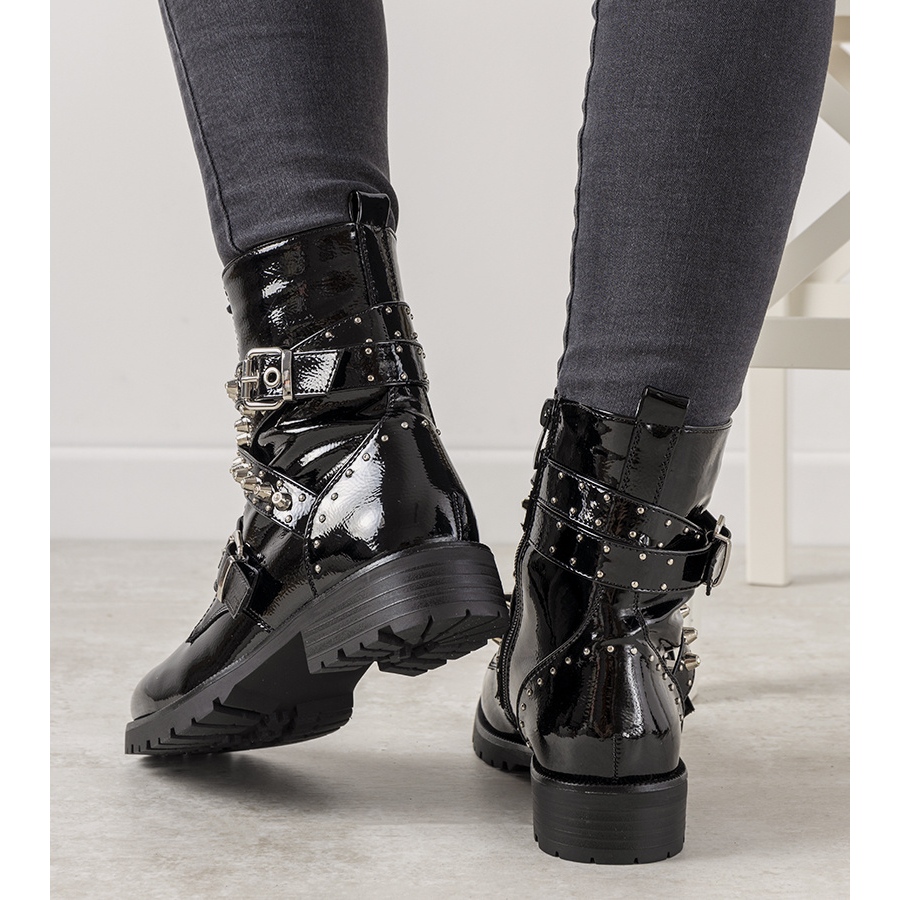 Szczegóły: Czarne lakierowane traperki damskie Tanut