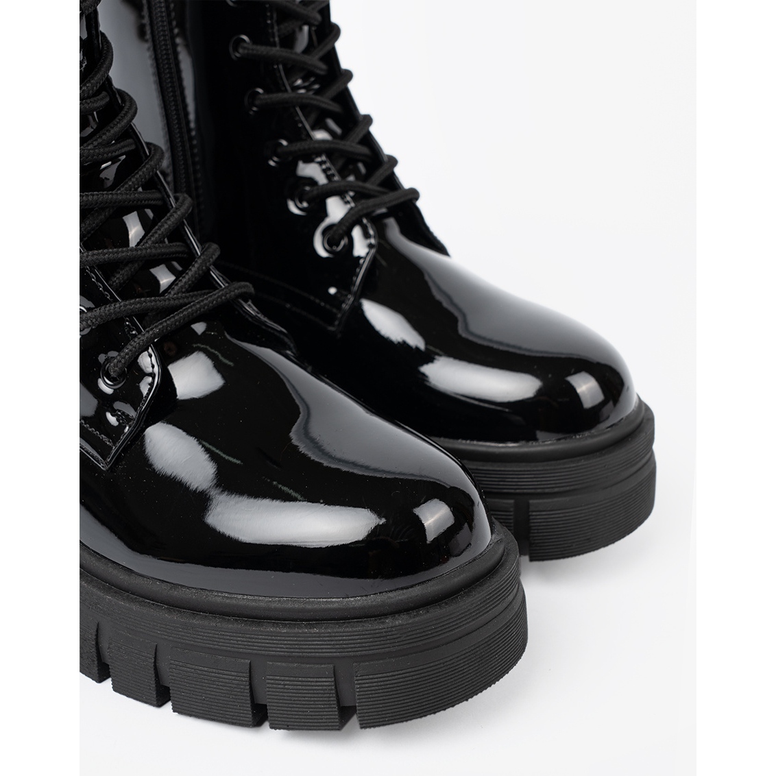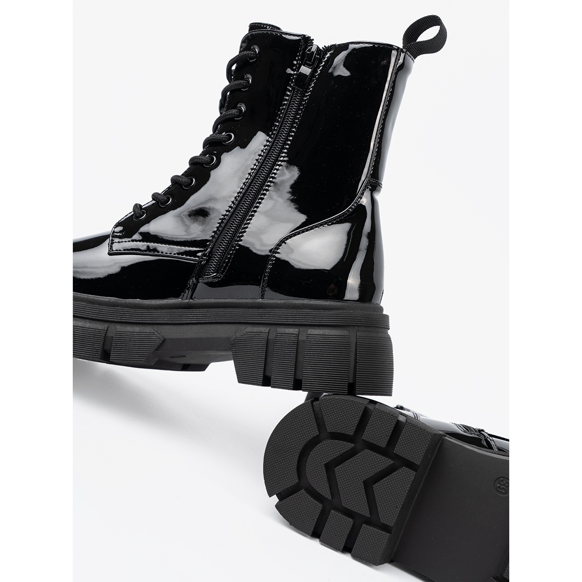 Szczegóły: Shelvt Czarne lakierowane workery na masywnej podeszwie