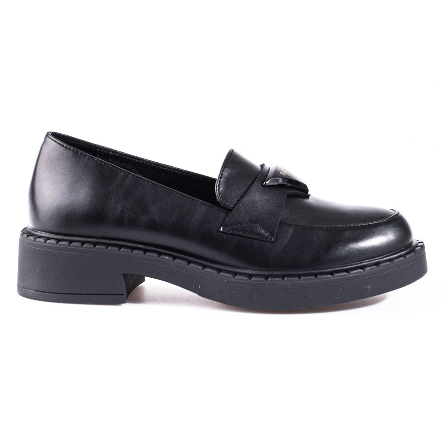 W. Potocki W. Potocki Czarne mokasyny damskie na platformie