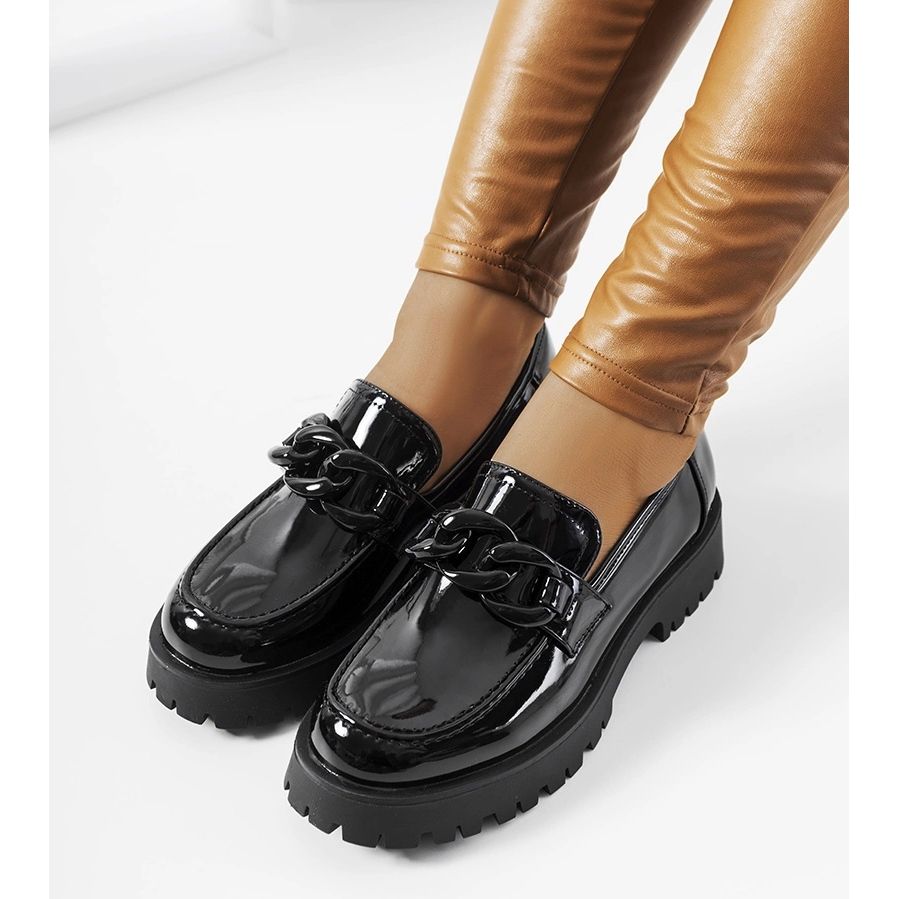 Inna marka Czarne mokasyny lakierowane na grubej podeszwie Dominick