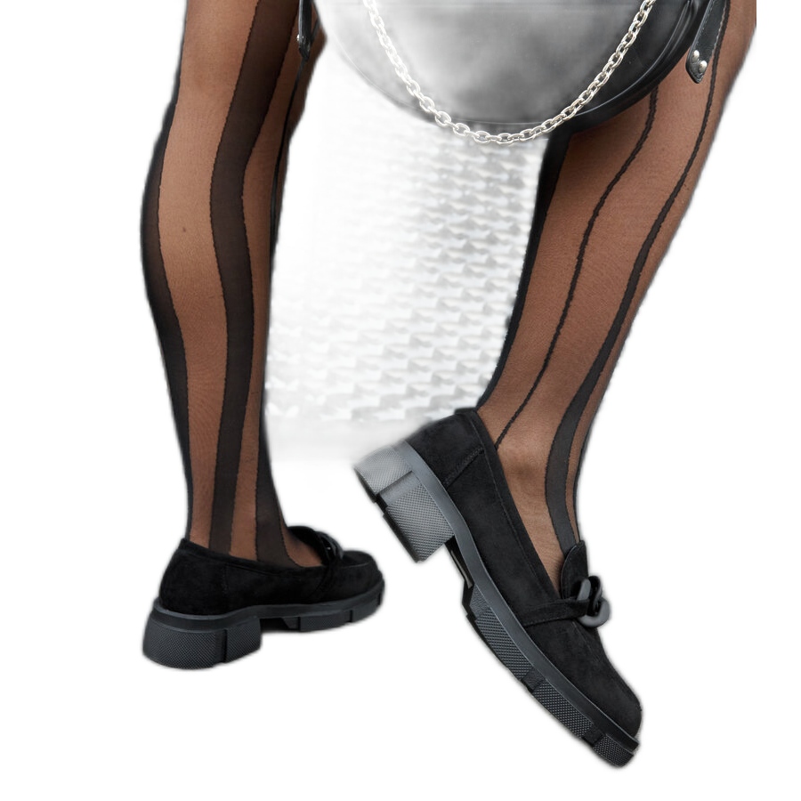 Szczegóły: Czarne mokasyny z łańcuchem eko-zamsz