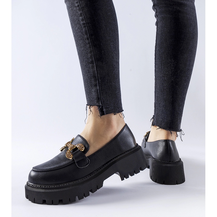 - Model: H8-309 Czarne mokasyny zdobione cyrkoniami