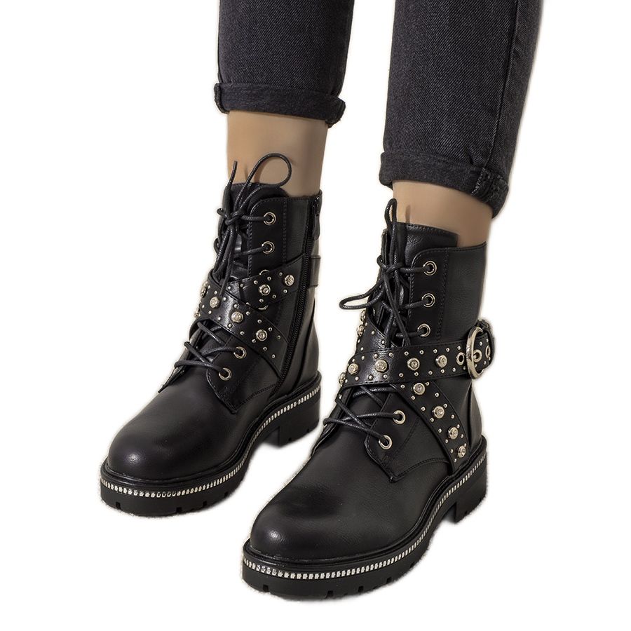 Model Joann dostępny jest w klasycznym czarnym kolorze, co sprawia, że będzie pasować do wielu różnych stylizacji. Zapięcia w postaci zamka, sprzączki oraz sznurowania łączą funkcjonalność z modnym wyglądem. Dodatkowe elementy, takie jak cyrkonie i dżety, dodają całości ekskluzywności.