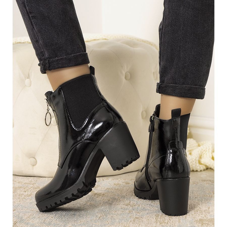 Inna marka Czarne ocieplane botki lakierowane Ward