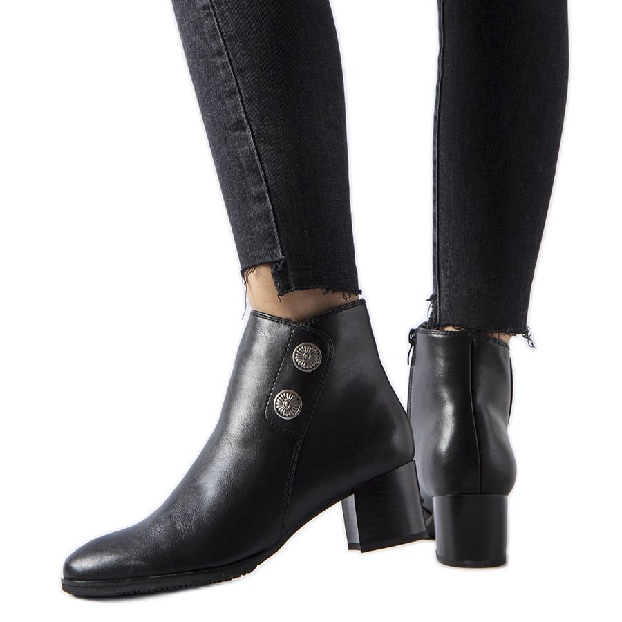 Czarne ocieplane botki na niskim słupku Guido (model HF284A)