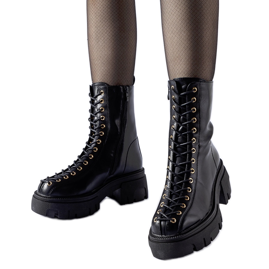 Szczegóły: Czarne ocieplane glany zdobione wiązaniem Amla