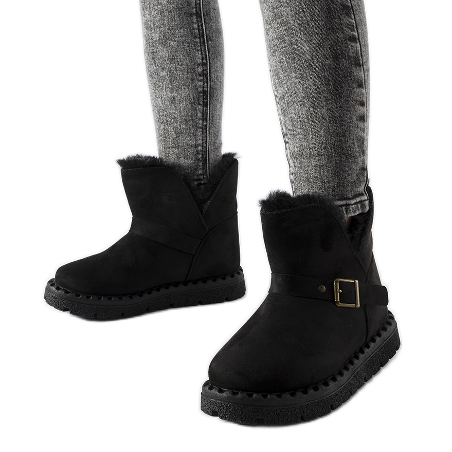 Czarne ocieplane śniegowce z wycięciem Monal (model 6544-21)