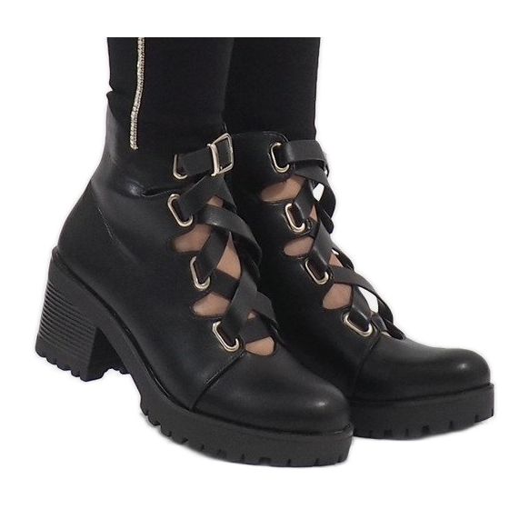 Szczegóły: Mulanka Czarne odkryte botki na obcasie J-10