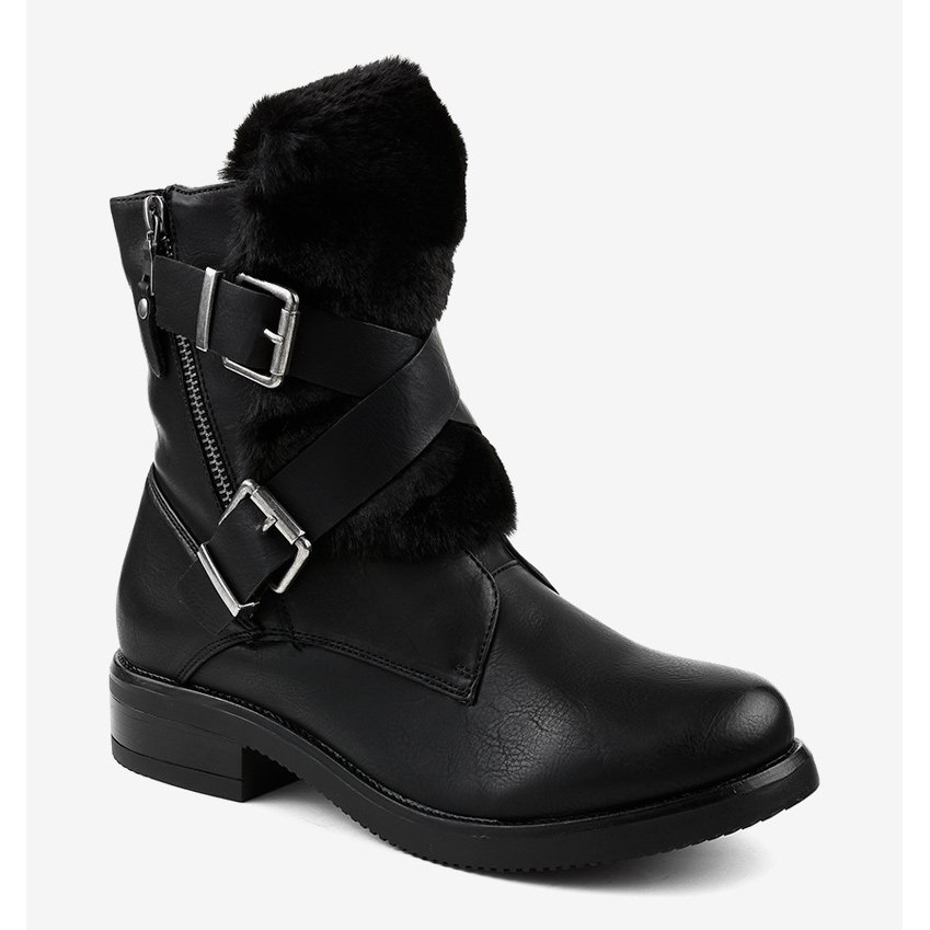 Inna marka Czarne płaskie botki z futerkiem 1061A-PA